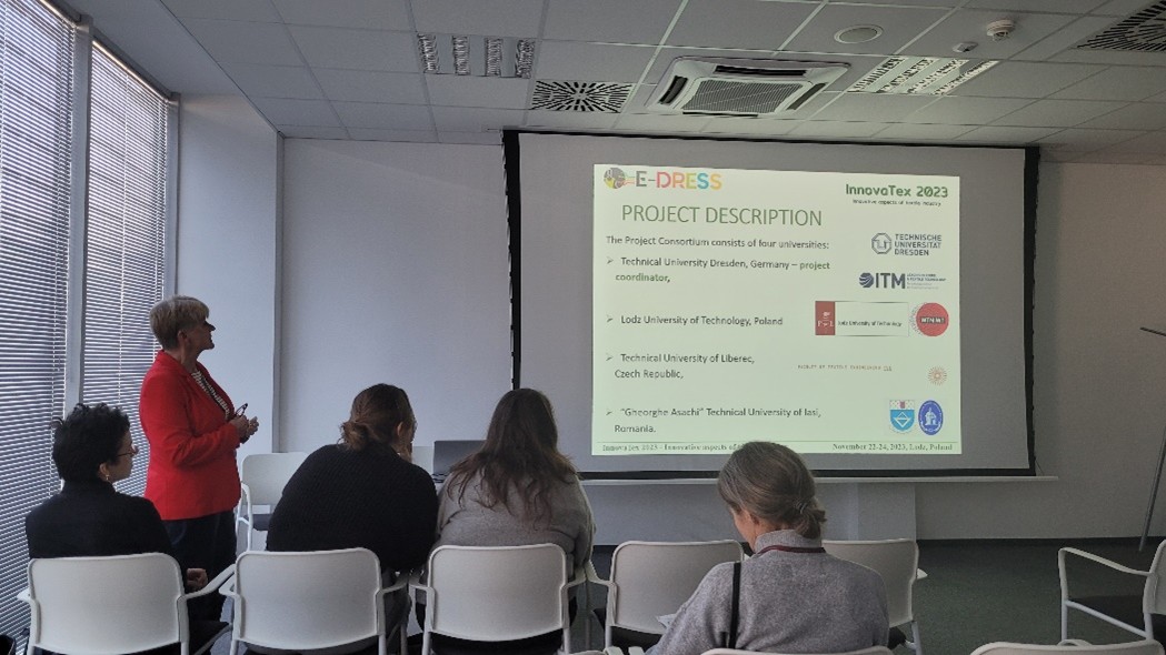 Prof. Malgorzata Matusiak presented the ongoing E-DRESS project to the participants of Innovatex 2023 held during 22-24 Nov. 2023 in Lodz Poland.